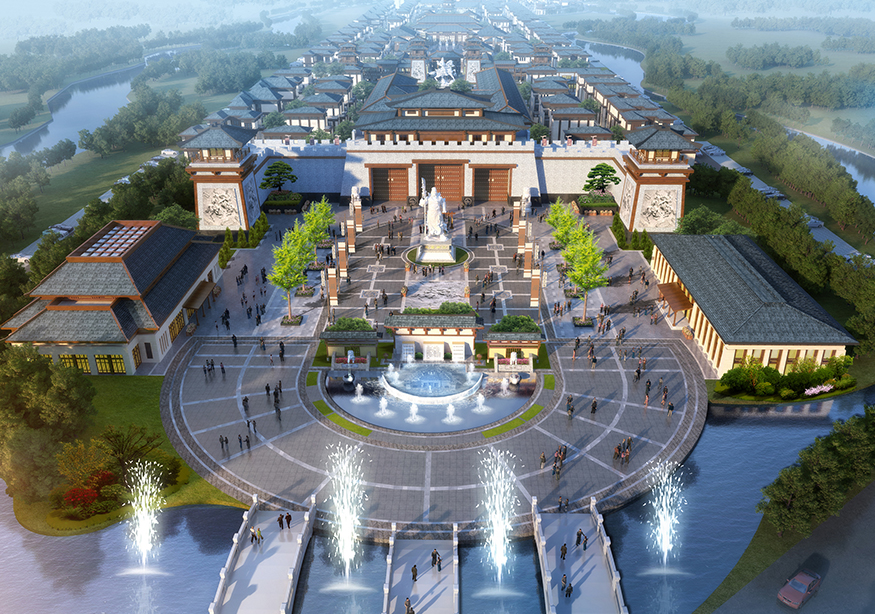 ? ? 文化商業(yè)街的設(shè)計(jì)頗具匠心,從入口處開始,至文化商業(yè)街出口處結(jié)束,整個(gè)用關(guān)羽輝煌起伏的一生為時(shí)間線進(jìn)行貫穿。如果說整條街區(qū)是關(guān)羽在世生而仁、仁而勇、勇而義、義而忠的再現(xiàn),那么從街區(qū)的出口處就是關(guān)羽侯而王、王而帝、帝而圣、圣而天文化升華的開始。讓體驗(yàn)者通過關(guān)公精神,體驗(yàn)現(xiàn)代旅游綜合商業(yè)區(qū),建設(shè)一個(gè)集餐飲休閑、旅游度假為一體的傳統(tǒng)古典園林式的商業(yè)綜合體。