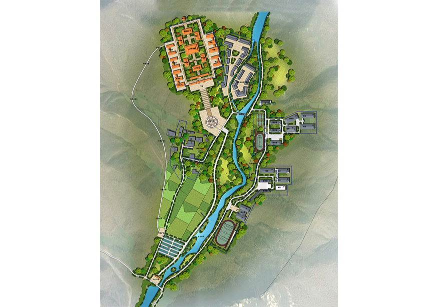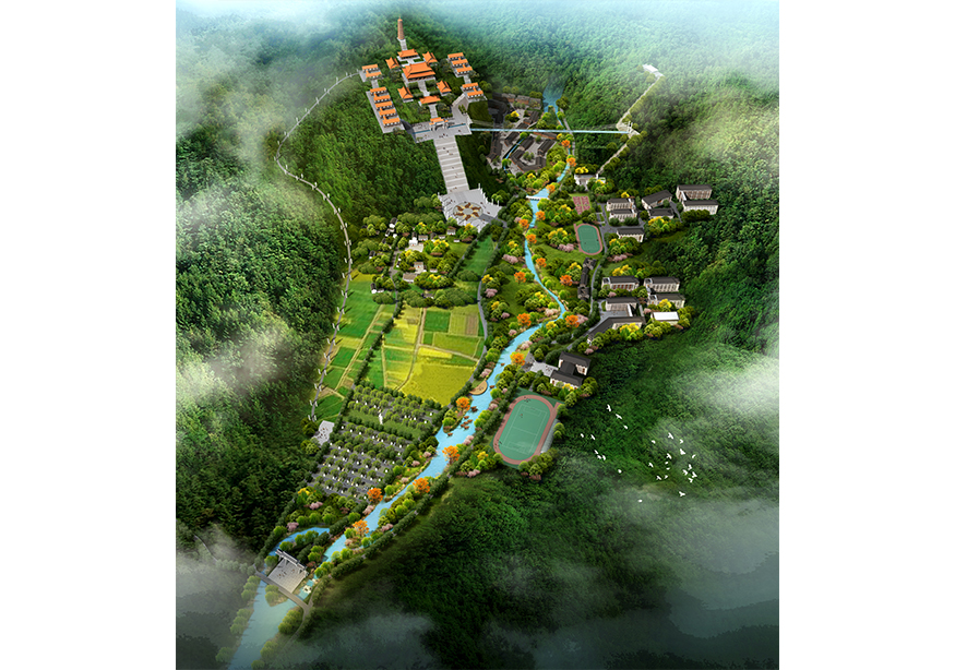駐馬店忠國(guó)寺項(xiàng)目選址位于河南省駐馬店市,距離市區(qū)約50公里,占地面積共約30000畝,總建筑面積約8萬(wàn)方。用地現(xiàn)狀自然分光、地形地貌獨(dú)特,且風(fēng)水極佳,背有高山、前有流水、位于山谷之中,藏風(fēng)聚氣。整個(gè)項(xiàng)目圍繞忠國(guó)寺以“禪行”文化展開設(shè)計(jì),規(guī)劃有六大板塊,包含忠國(guó)寺寺廟區(qū)、衡水中學(xué)駐馬店分校、文武學(xué)校、養(yǎng)生素齋館、精品民宿區(qū)、北影影視基地。同時(shí)項(xiàng)目含有萬(wàn)佛大道、景觀索道、玻璃通天橋、聯(lián)姻橋、水上樂(lè)園等交通、旅游方面配套設(shè)施。