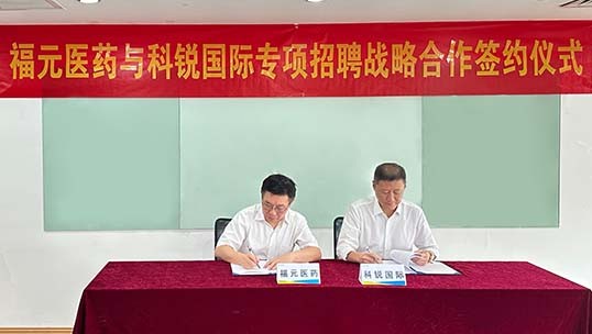 7月31日,北京福元醫(yī)藥股份有限公司與北京科銳國際人力資源股份有限公司正式簽署戰(zhàn)略推廣二部專項(xiàng)招聘戰(zhàn)略合作協(xié)議。